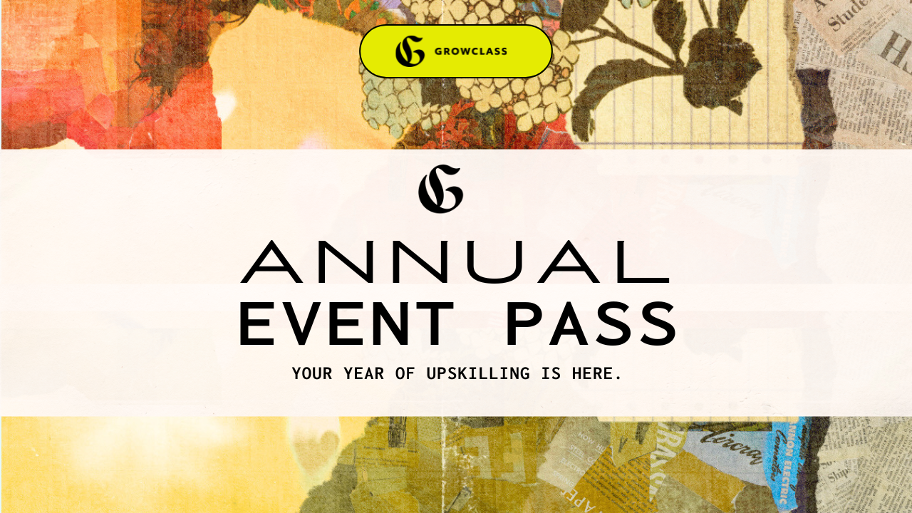 You know what’s better than flying somewhere for a single conference? Buying one pass that gives you access to multiple virtual marketing events throughout the year! The Growclass Annual Event Pass unlocks hands-on virtual workshops and full-day summits designed to help you level up your marketing skills from the comfort of your home.